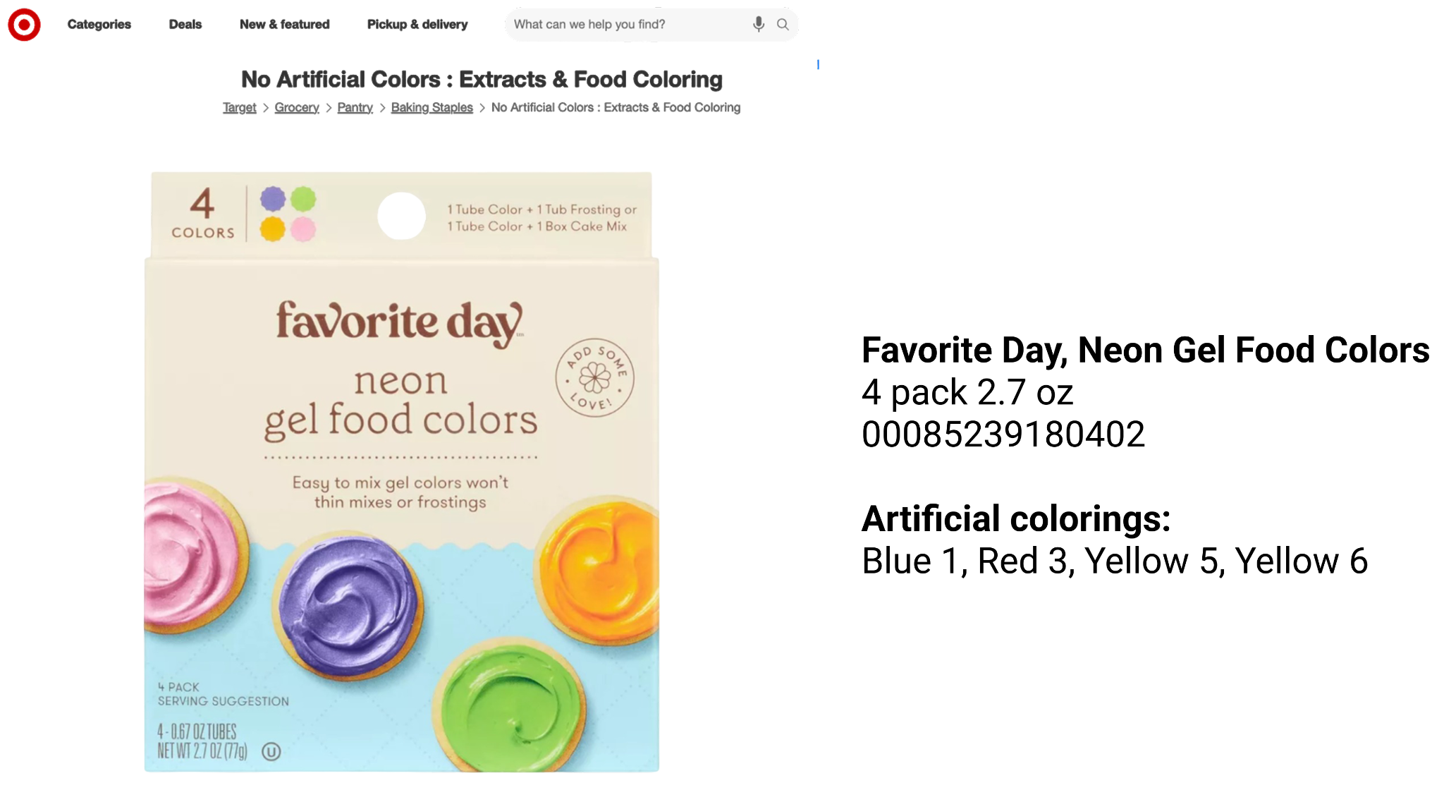 Some retailers are already marketing products based on the absence of synthetic colors using website categories or filters. Understanding artificial vs natural color ingredient names -- despite existing FDA guidelines -- has been challenging. For example, Target promote private label products with synthetic dyes as having No Artificial Colors.